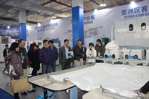 From October 6 to October 9, the 19th China International Down & Feather Exposition and the 5th Xiaoshan Down Fair was held successfully in Xinnongdu Convention & Exhibition Center of Xiaoshan District in Hanzhou City. Exhibitors include key enterprises on down and feather products all over China and relevant enterprises of mechanical and inspection equipment. As the only equipment manufacturer invited by CFDIA (China Feather & Down Industrial Association), Bealead participated in the exhibition with its four kinds of down filling machines, which all attracted great attention. Contracts were signed for two 3rd generation high performance weighing and filling machines with double ports (818B) and a fully-automatic down quilt filling machine on the exhibition. The global leading down quilt filling machine is mainly used for home textile quilts and large automated equipment, and can be customized according to the customers’ requirements.