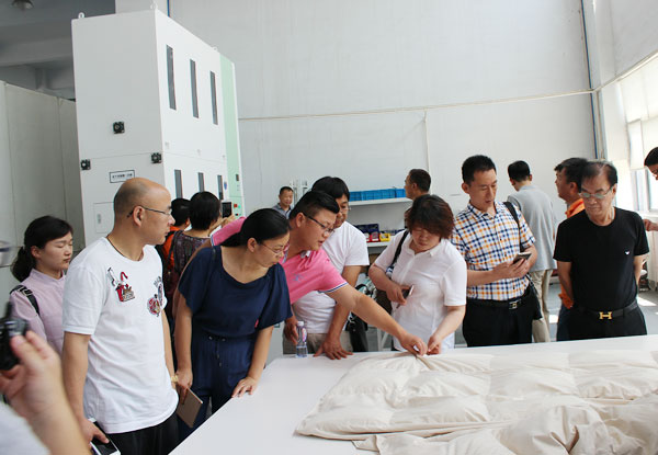 On the day of interview, the visiting experts and company representatives have had a comprehensive understanding first through videos to Bealead’s development in recent ten years and automatic filling products researched by Bealead. Aim to the requirement in home textile field, Bealead has developed automatic duvet filling machine at the earliest, and got the recognition by markets. Nowadays, the product chain of Bealead home textile equipment has got continuously improvement, which has formed home textile automation integrated solution of complete production line to the products of duvet, pillow, sleeping bag and folding machine.