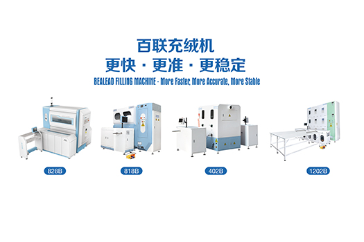 百聯(lián)展品:828B第四代充絨機(jī)、全自動裁片編號機(jī)、全自動發(fā)貨包裝機(jī)、百聯(lián)羽絨、百聯(lián)軟件
