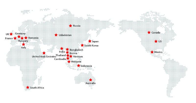 截至目前,百聯(lián)已在全球組建了8家海外服務(wù)分支機(jī)構(gòu),業(yè)內(nèi)范圍已覆蓋世界主要的紡織服裝產(chǎn)地及市場(chǎng),比如南亞及東南亞的印度、孟加拉國(guó)及越南、馬來西亞、印度尼西亞,東亞的韓國(guó)、日本,歐洲的英國(guó)、法國(guó)、德國(guó)、意大利、羅馬尼亞,美洲的加拿大、美國(guó)、墨西哥以及俄羅斯、南非、阿拉伯半島等國(guó)家及地區(qū)。