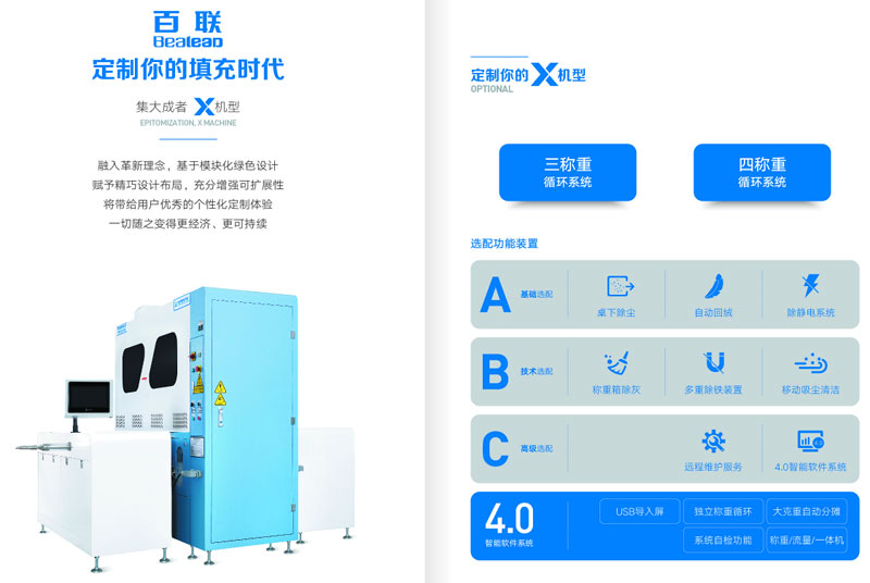 百聯(lián)展品:X型模塊化自動充絨機、 402D全自動稱重絨棉一體機
