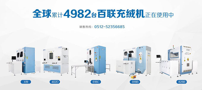百聯(lián)展品:X型模塊化自動充絨機(選配封口機)、 402D全自動絨棉一體機
