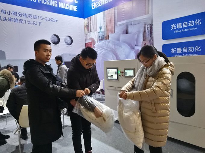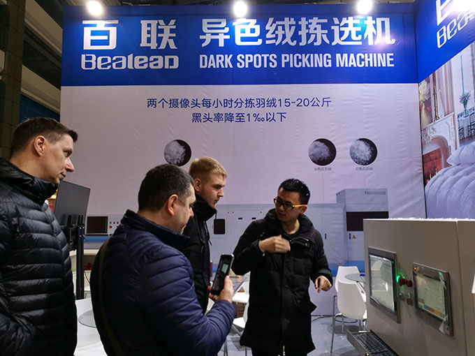 本屆羽博會(huì)期間,百聯(lián)側(cè)重對(duì)異色絨揀選機(jī)、1202羽絨被充絨機(jī)等產(chǎn)品的性能優(yōu)點(diǎn)進(jìn)行現(xiàn)場(chǎng)演示,專(zhuān)業(yè)觀眾可自帶樣品試機(jī),現(xiàn)場(chǎng)“檢驗(yàn)”效果。