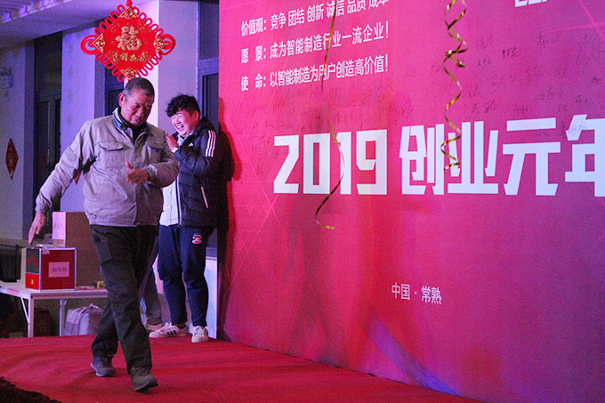 董事長錢衛(wèi)波在隨后的新春致辭中表示了2018年公司的動態(tài),以及對未來公司發(fā)展的愿景。在2018年,不僅融資引入了新的資本,還建成了具有戰(zhàn)略發(fā)展意義的“智能制造”新基地,并耗資數(shù)千萬重裝上線德國TRUMPF的智能生產線。