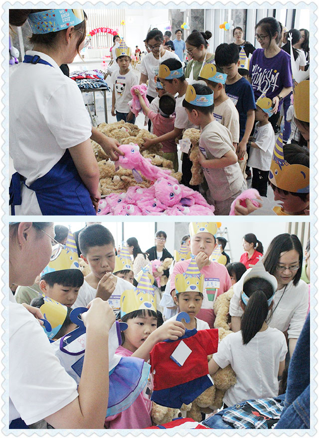 小朋友排隊領(lǐng)取玩偶皮膚和衣服