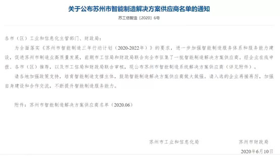此次征集,是在蘇州市為全面落實《蘇州市智能制造三年行動計劃(2020-2022年)》的要求,進(jìn)一步加強(qiáng)智能制造服務(wù)體系和服務(wù)能力建設(shè),促進(jìn)蘇州市制造業(yè)高質(zhì)量發(fā)展的背景下開展,是按照立足蘇州、基礎(chǔ)良好、自主可控、業(yè)績突出原則,征集一批專業(yè)服務(wù)能力強(qiáng)、能夠有效支撐服務(wù)蘇州制造業(yè)轉(zhuǎn)型升級發(fā)展的智能制造解決方案供應(yīng)商。