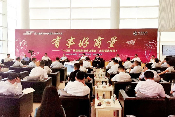 8月25日,蘇州市委、市政府、市政協(xié)聯(lián)合舉辦了“有事好商量”之“十四五”規(guī)劃編制協(xié)商議事會暨第九期民營企業(yè)家沙龍(政協(xié)委員專場)。省委常委、市委書記藍(lán)紹敏出席會議,并與20多位民營企業(yè)家政協(xié)委員一起圍繞高水平編制蘇州“十四五”發(fā)展規(guī)劃的核心問題進(jìn)行深入互動交流,共同謀劃蘇州未來發(fā)展宏偉藍(lán)圖。我司錢衛(wèi)波董事長作為蘇州市政協(xié)委員應(yīng)邀出席此次協(xié)商議事會,為“十四五”發(fā)展積極建言獻(xiàn)策。