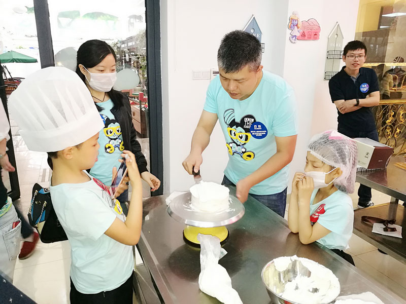 平時(shí)搞研發(fā)、裝機(jī)器、跑銷售的爸爸或媽媽,要和孩子們一起做蛋糕,其實(shí)很有挑戰(zhàn)性。做蛋糕坯、上奶油、裱花,既考手藝又考創(chuàng)意。讓人不禁比較起來,到底哪一組家庭完成得更好呢。