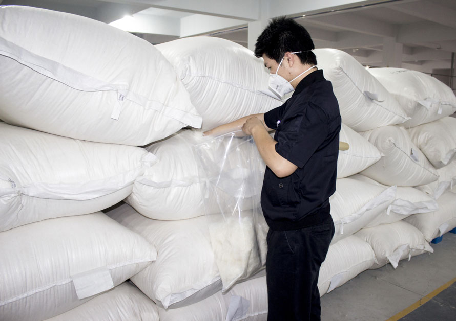 檢驗不合格的羽絨,將會被退回工廠重新生產(chǎn)。
